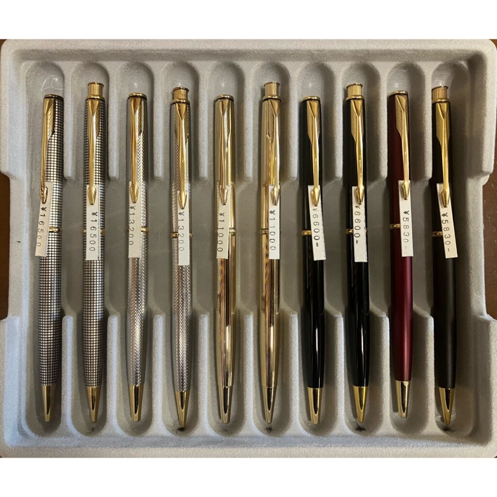 ブランドは全てパーカーで、万年筆、ローラーボール、ボールペン、シャープペンシルなど様々で、私が仕事に就いた頃に発売されたものから、十数年前までのものまであります。今では作られていない廃番のもの、仕様が変わっているもの、価格が安いものなどそれぞれですがどれも魅力的で、ドイツから届いた大きなダンボール箱をワクワクしながら開けました。