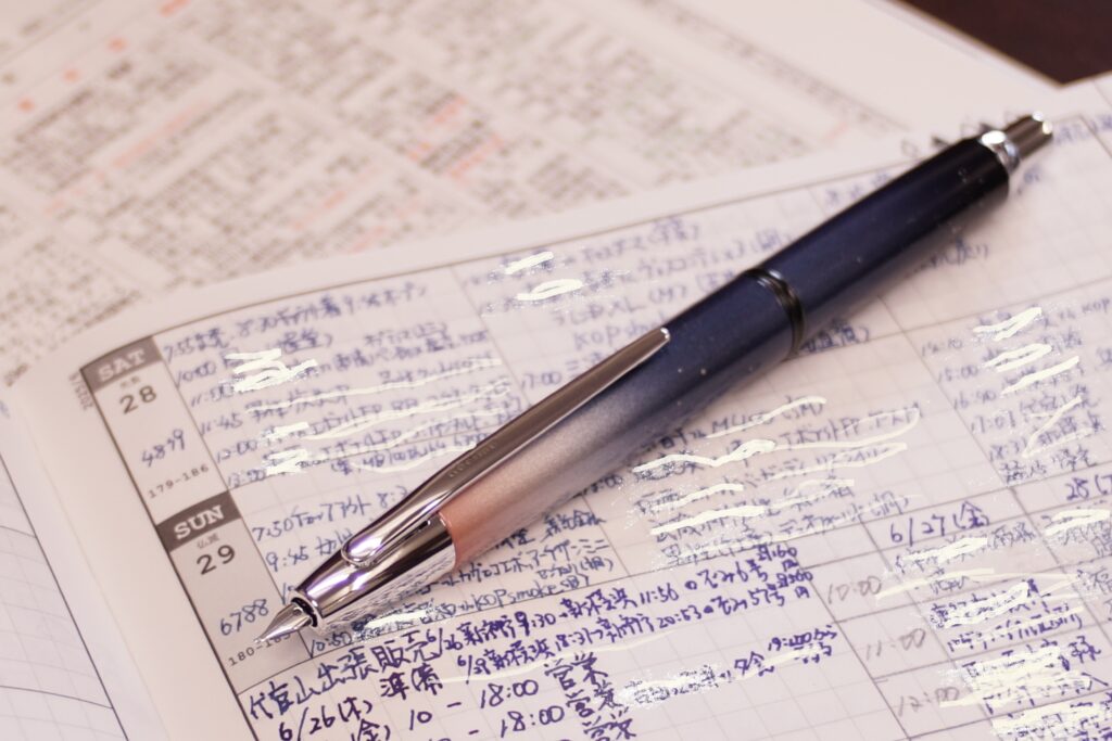 国産細字や極細などで細々とその日のことはその日の欄に書くようにすると情報が後からでも見つけやすい。